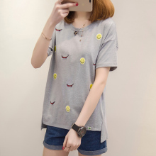 2017夏装新款韩版宽松圆领短袖爱心图案刺绣T恤女装潮