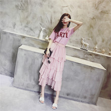 春装2017新款女韩版时尚字母印花短袖宽松连衣裙网纱半身裙套装裙