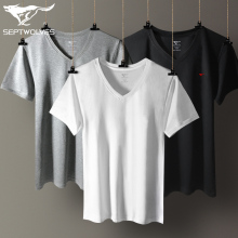 七匹狼夏季白T恤男士纯棉内衣上衣服V领修身打底汗衫体恤短袖背心