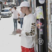 viishow夏男士长袖T恤青年纯棉套头体恤男潮迷彩字母圆领打底