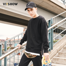 viishow 男装春夏新品男士时尚拼色纯棉圆领卫衣套头男无帽衫