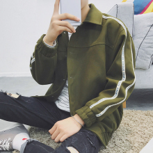 日系简约刺绣字母男生无扣气质开衫夹克春装男士青年小外套潮上衣