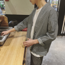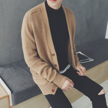日系复古男士简约纯色V领针织开衫韩版青年春秋装宽松毛衣潮外套