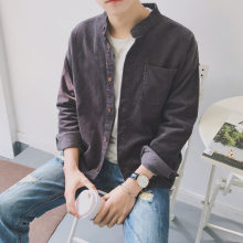 日系复古男士灯芯绒贴布宽松衬衣春季青少年免烫长袖衬衫潮流外套