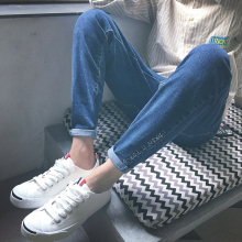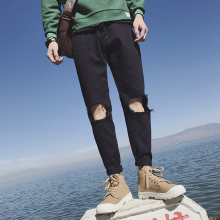 日系哈伦版型男士膝盖大破洞牛仔裤子韩版青少年宽松小脚九分裤潮