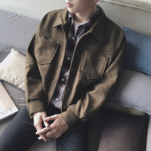 日系水洗麂皮绒男士翻领夹克衫春秋装百搭青年韩版复古外套潮衣服