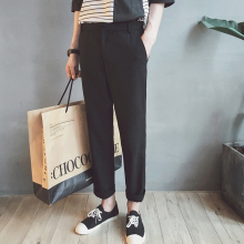 春夏薄款黑色显瘦男士锥形直筒休闲裤子韩版青少年修身纯色长裤潮