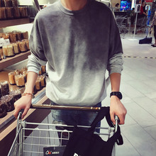 春秋装日系复古百搭渐变色长袖圆领男士韩版宽松套头卫衣潮男外套