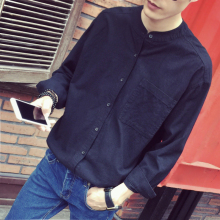 春装新款日系复古潮男立领亚麻衬衣韩版宽松男士青年棉麻长袖衬衫