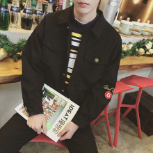 日系复古青少年翻领夹克衫春季韩版潮流男款上衣宽松休闲落肩外套