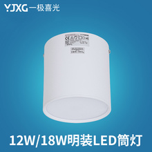 一极喜光LED筒灯商业明装吸顶 12W18W防雾透镜筒灯无吊顶照明洞灯