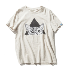 原创日系男装夏装新款个性可爱小猫印花韩版圆领休闲短袖T恤男Tee