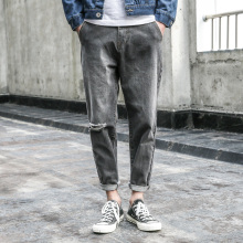 DJYG 日系原创立体裁剪做旧韩版男士小脚破洞牛仔裤男休闲长裤男