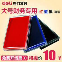 得力办公用品文具9864大号超大印泥 红蓝黑色财务速快干加墨印台
