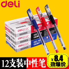 中性笔得力文具12支签字碳素水笔0.5mm办公笔芯书写用品批发