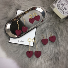 包邮 韩国韩版暗红爱心木头桃心少女萌萌心形无耳洞耳环耳勾耳夹