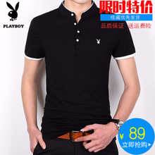花花公子男士纯色短袖t恤男潮韩版修身翻领打底衫夏季男半袖体恤