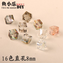 8毫米方形水晶珠 手工DIY串直孔玻璃珠 蝴蝶结发饰材料发卡配件