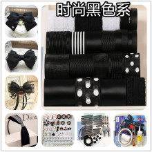 时尚黑色系蝴蝶结材料包 diy手工发饰发夹蝴蝶结新手套餐丝带配件