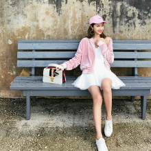 【满3件200元】春季新款粉色bf风上衣女短款外套学生棒球服女装韩