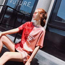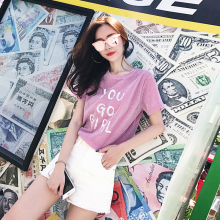 西西小可字母印花宽松亮丝T恤学生短袖上衣女夏2017新款韩版百搭