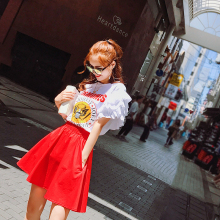 西西小可字母印花圆领T恤短裙套装女夏季时尚两件套2017新款潮