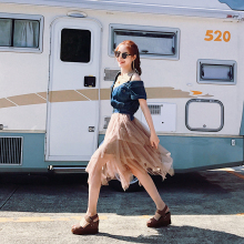 西西小可2017春季新款高腰蕾丝长裙半身裙松紧腰镂空网纱蓬蓬裙