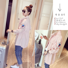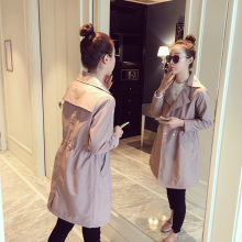 2017春装新款韩版抽绳收腰宽松薄款外套翻领刺绣中长款风衣女潮