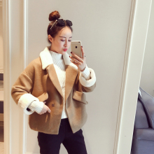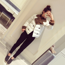 包邮女装冬季2016新款潮韩版短款外套棉服羊羔毛拼接翻领棉袄棉衣
