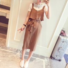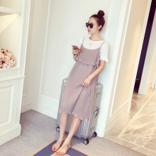 2017夏季新款韩版t恤两件套中长款小清新套装裙女显瘦吊带连衣裙