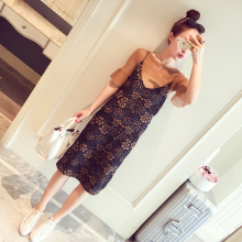 吊带连衣裙女两件套2017夏季新款韩版显瘦裙子潮纯色百褶雪纺长裙