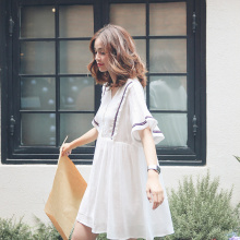 小维2017夏季新款小清新百搭连衣裙套头荷叶袖短袖白色短裙夏