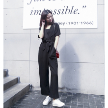 2017春季新款宽松收腰气质纯色连体裤女装韩版阔腿裤显瘦长裤子