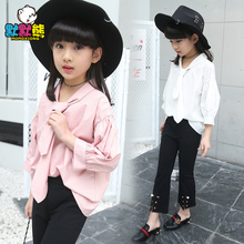 2017春季新款女童韩版套装中大童长袖上衣小女孩黑色裤子两件套潮