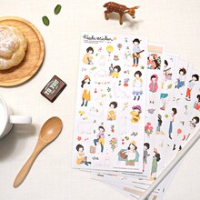 韩国heeda森林系女孩可爱卡通日记PVC透明贴画手帐贴纸 6张入