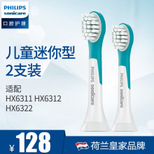 飞利浦 HX6032牙刷头二支装适用HX6311 HX6312儿童牙刷适合4-18岁