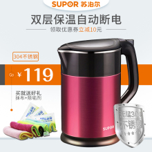 SUPOR/苏泊尔 SWF17E20B 电热水壶304不锈钢双层保温电水壶烧水壶