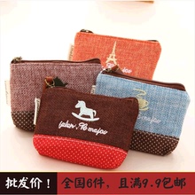 韩国可爱棉麻时光卡通帆布布艺女式零钱包钥匙包小钱包特价a018