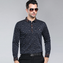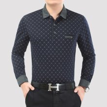 中年男士时尚碎花长袖T恤秋季新款翻领大码宽松休闲打底衫爸爸装