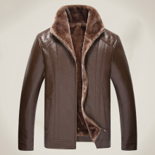 冬季新款中老年纯色男士加绒厚款毛领皮衣外套时尚休闲宽松爸爸装