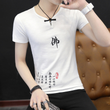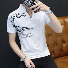 2017夏季新款V领短袖T恤男士半袖体恤青年潮流个性男装上衣服夏装