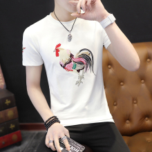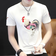 2017夏季男士短袖t恤圆领修身韩版绣花体恤衣服潮流男装半袖夏装