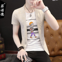 夏装男士短袖T恤韩版圆领半袖修身假两件体恤潮2017夏季新款衣服