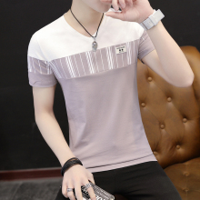 2017夏季新款男士短袖t恤男韩版修身V领半袖体恤学生潮流男装衣服