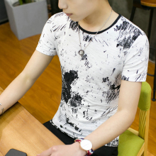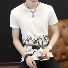 2017夏季新款男士短袖t恤圆领韩版修身夏装印花男装体恤潮流半袖