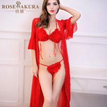 超薄透视柔纱睡袍性感蕾丝三点式真人情趣内衣性感诱惑睡裙套装女