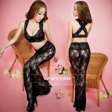 情趣内衣夜店诱惑套装黑色透视蕾丝分体睡衣女式性感托胸长裙制服
