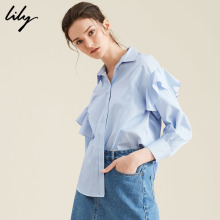 Lily2017夏新款女装商务条纹荷叶边长袖宽松衬衫117219C4918