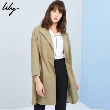 Lily2017春新款女装翻领九分袖收腰中长款风衣117129C1909