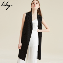Lily女装商务通勤中长款纯色蕾丝镂空修身无袖马甲116210C0102